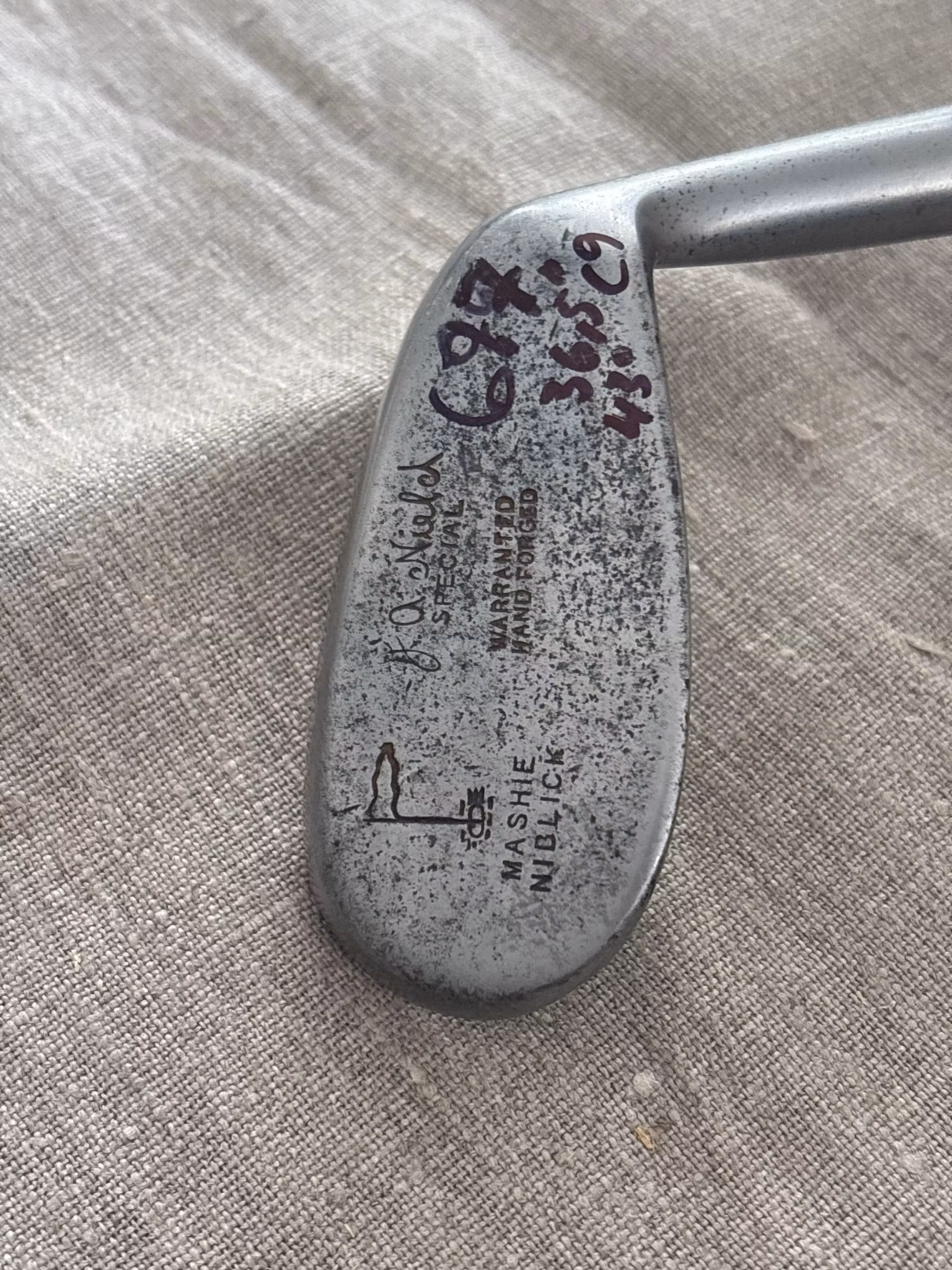 Bra mashie niblick med bred sula från erkända Forgan i St Andrews.Pro: JA Nield, Face är Dashfaced.Cleekmark FlagstickLängd: 36,5"Loft: 43 graderSW: C9Flex: Reg